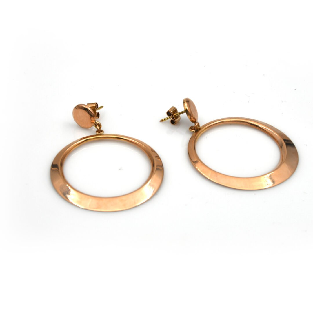 El precio original era: S/675,00.S/641,25El precio actual es: S/641,25.Aretes de oro 18k diseño candongas ovales entrelazadas seguro gancho