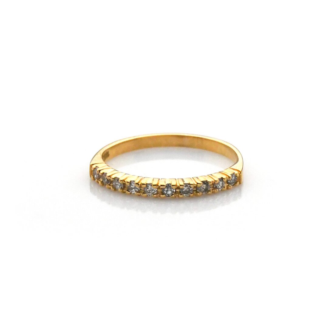 El precio original era: S/1.540,00.S/1.386,00El precio actual es: S/1.386,00.Anillo de oro para mujer 18k diseño solitario con 1 diamante y 4 piedras pequeñas transparentes