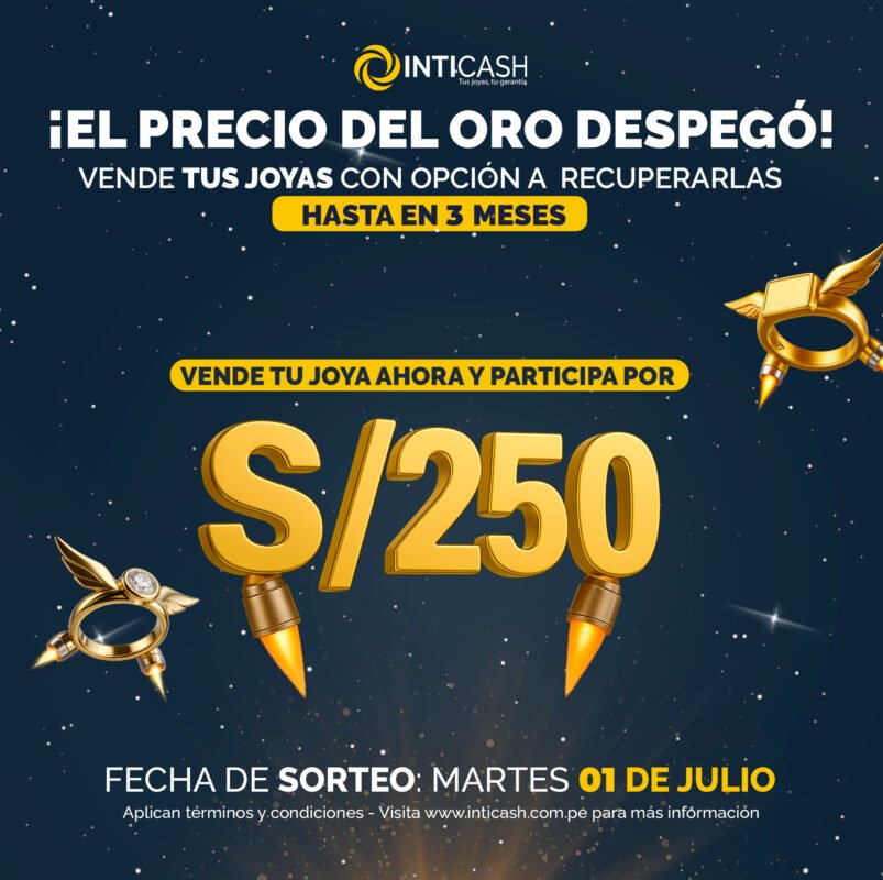 ¡El precio del oro ha despegado y en Inticash te damos más por tus joyas! Aprovecha nuestra campaña exclusiva y participa por S/250 ven...