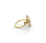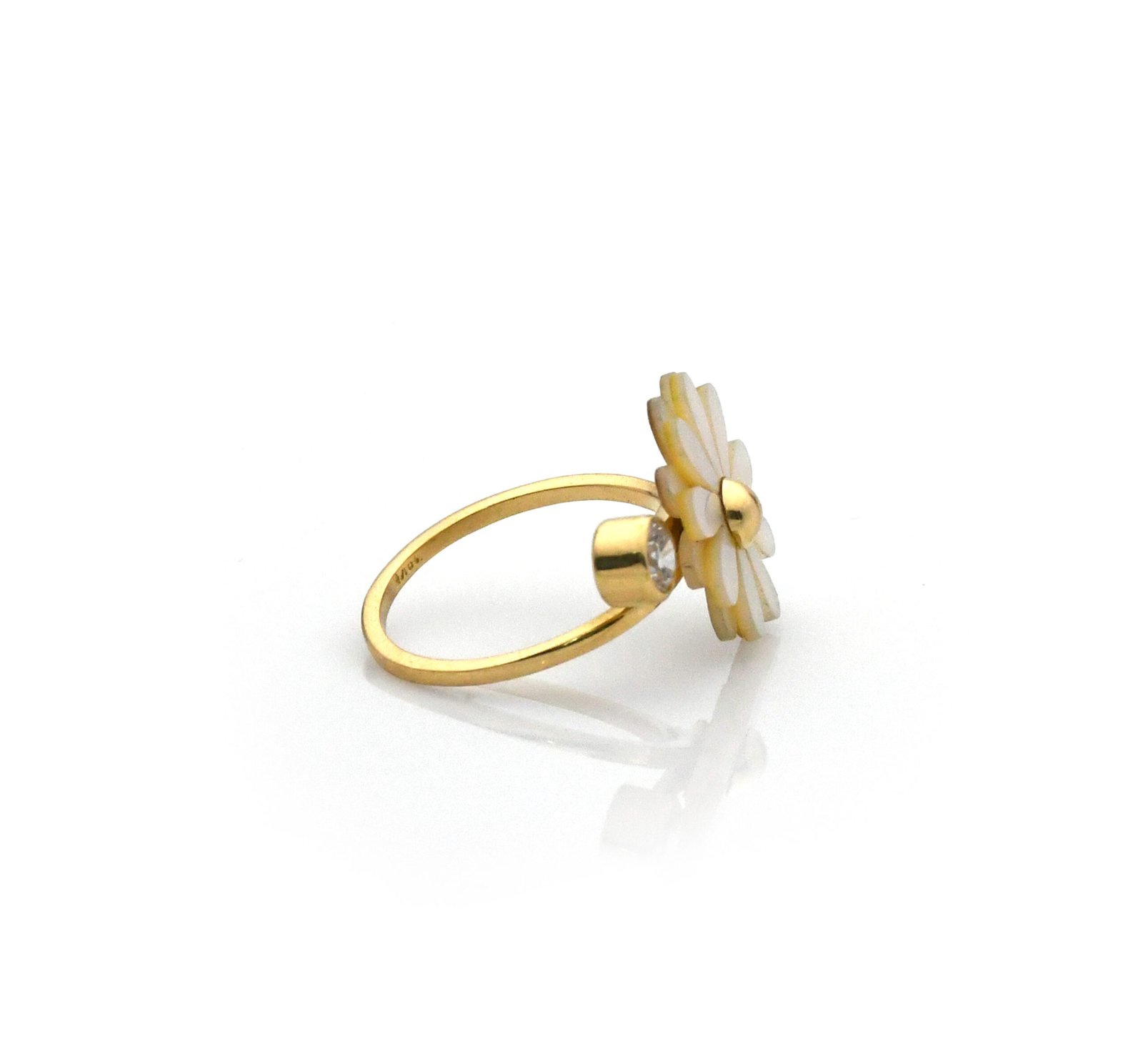 Anillo de oro 18k para mujer diseño solitario flor nacarada con 1 circón transparente