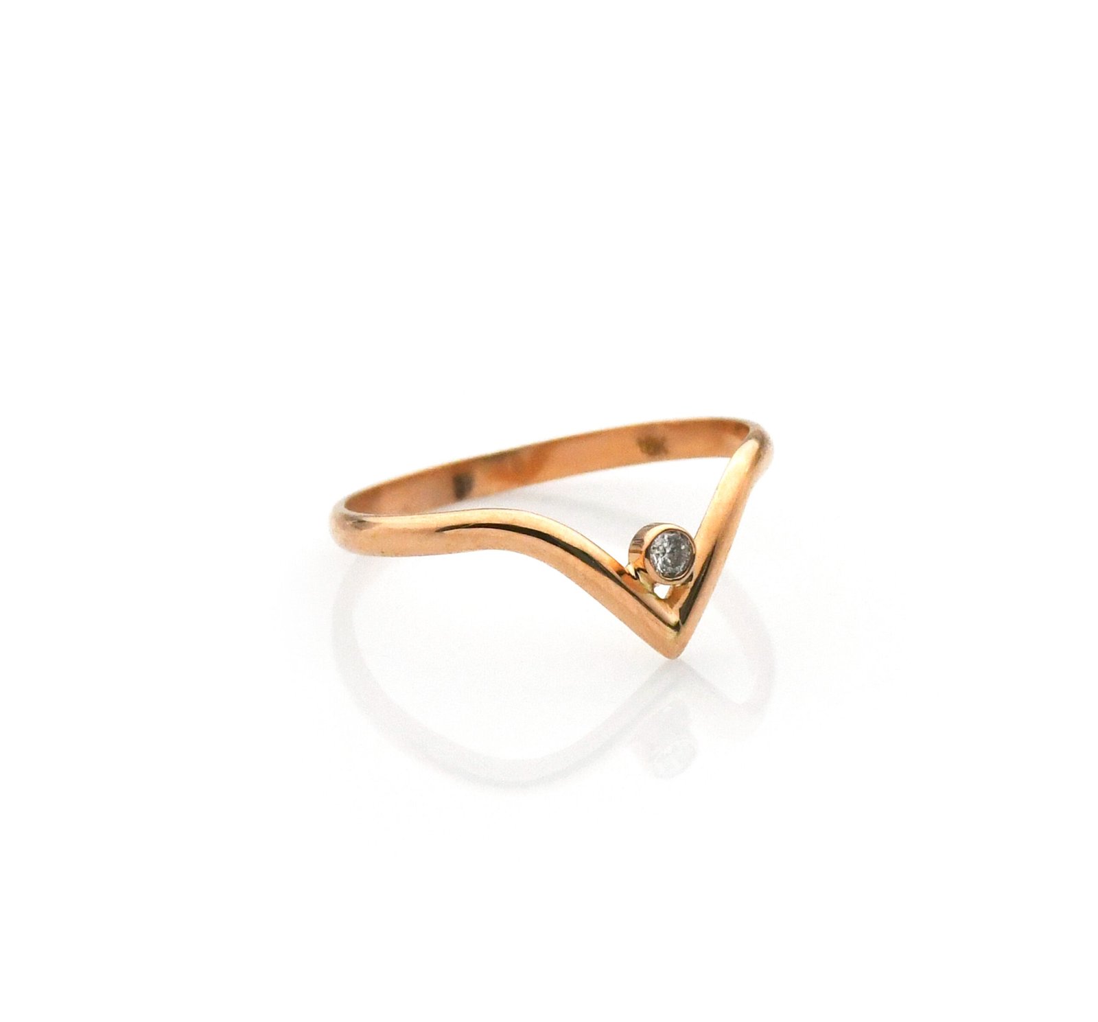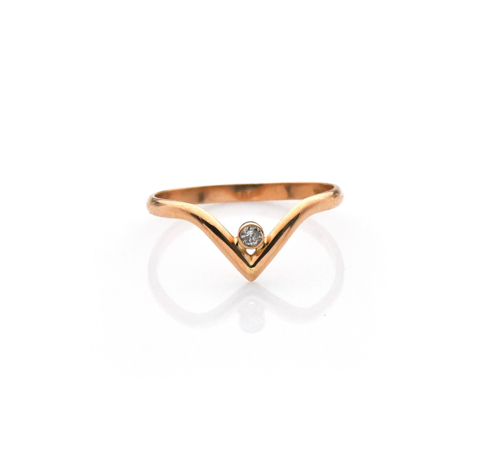 Anillo para mujer oro 18k diseño V con 1 diamante corte brillante (G-SI2)