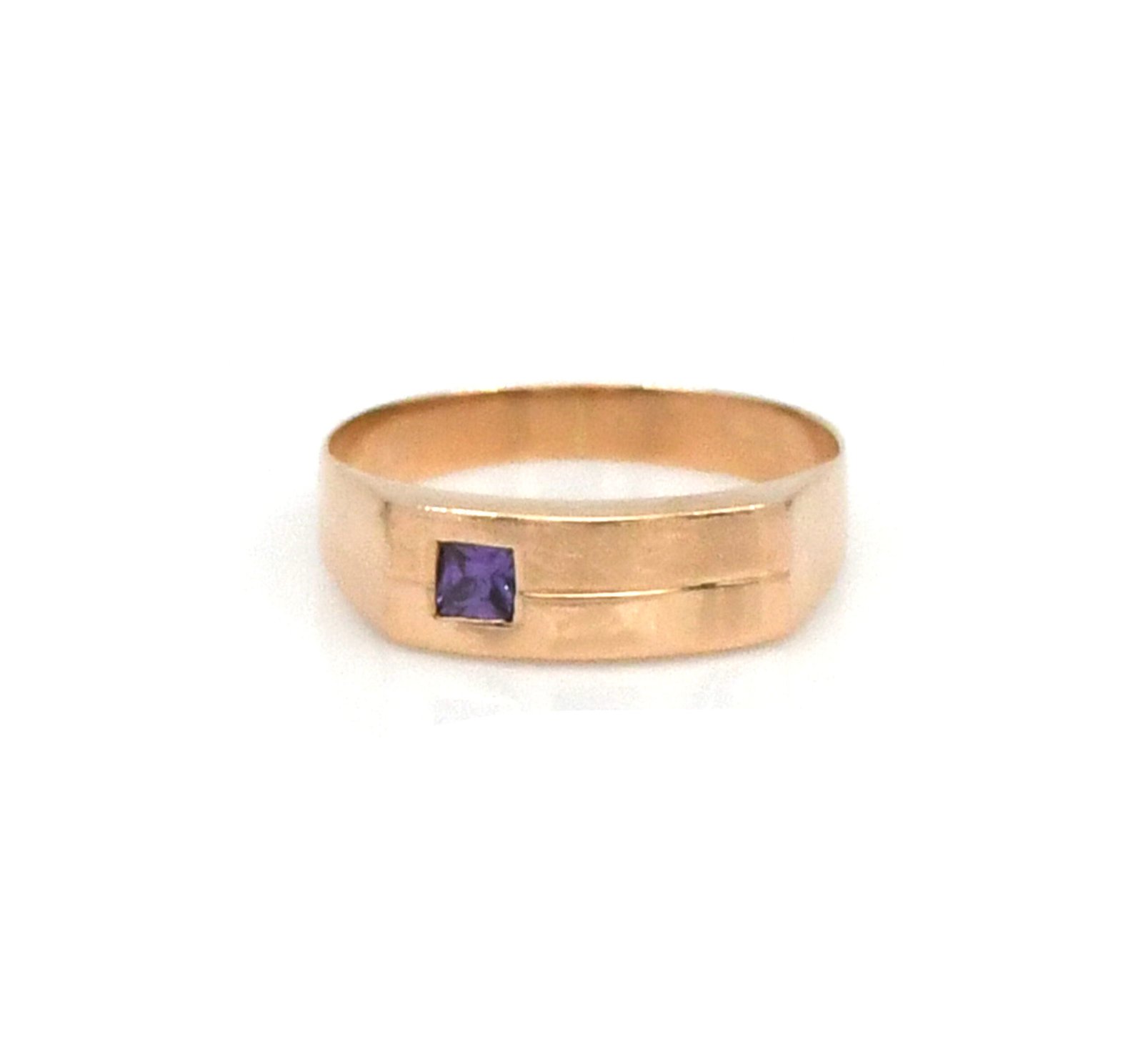 Anillo de oro para mujer 18k chevalier arenado con 1 piedra morada