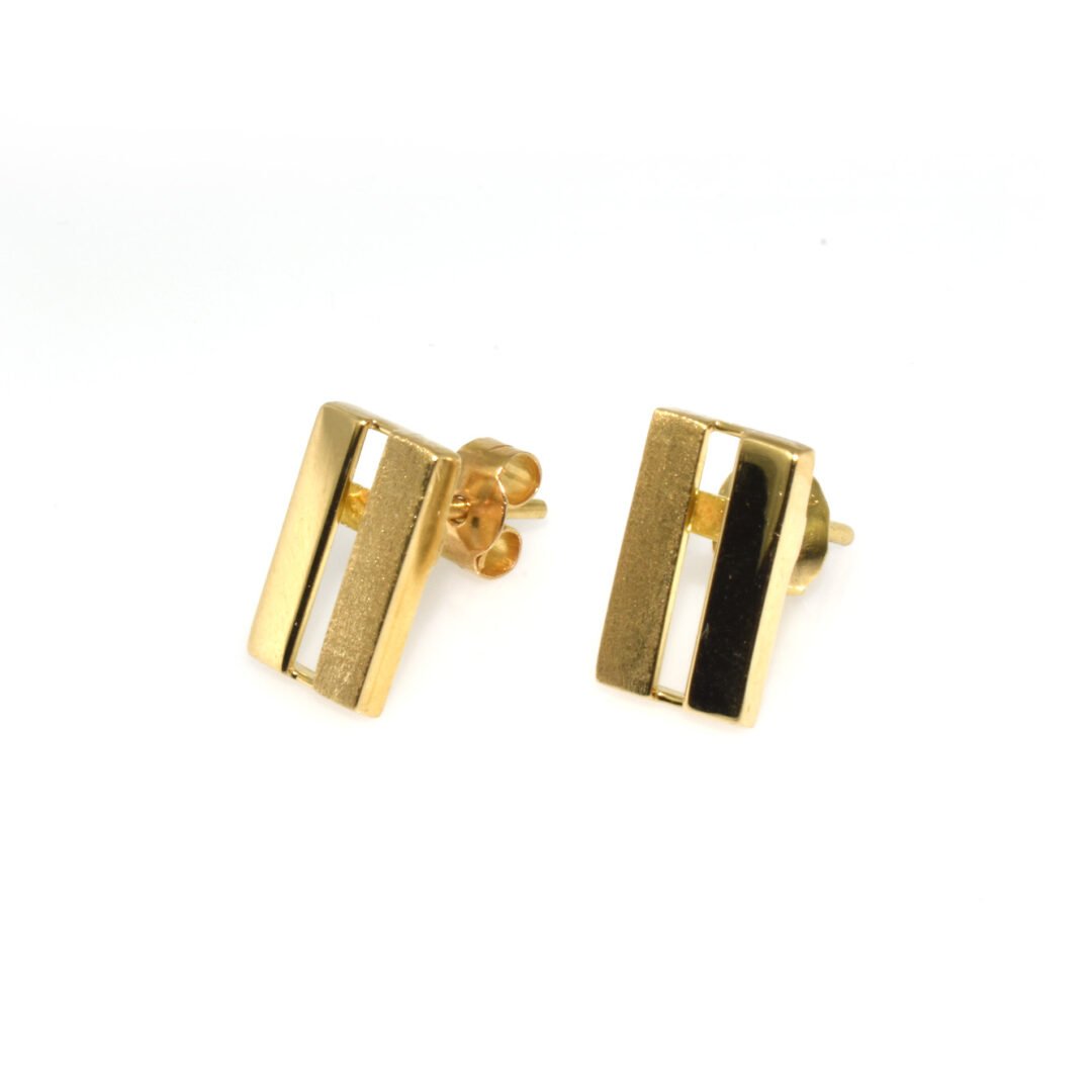Par de aretes para mujer oro italy 750 diseño candongas tubo rectangular seguro presion